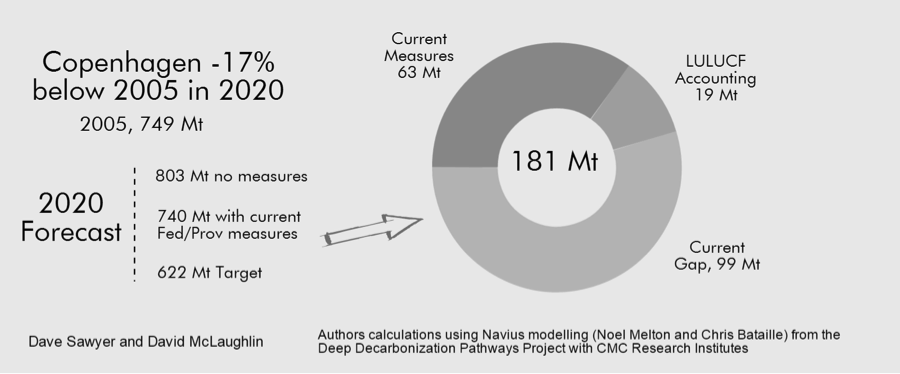 Canada’s Paris INDC is the successor to our current 2020 plan agreed at the Copenhagen CoP meeting in 2009. At that time, Canada aligned its 2020 GHG reduction target with that of the United States. Our target is to reduce emissions by 17% below 2005 levels by 2020. Currently, the country is nowhere near achieving that target. Independent forecasts from the Commissioner of the Environment and Sustainable Development (2014) as well as the former National Round Table on the Environment and the Economy (2012), showed that without additional measures, Canada would likely only get about half-way to its target by 2020.