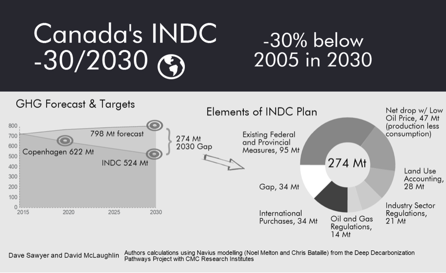 Today, Canada revealed its proposed greenhouse gas (GHG) reduction plan for the Paris Conference of the Parties to be held in November and December this year. Called an Intended Nationally Determined Contribution (INDC), it forms the basis of the federal government’s climate policy ambitions to the year 2030, and by extension sets the benchmark against which the provinces will be judged. Together with the INDCs of other countries, it becomes a key ingredient in the negotiations for a global climate deal at Paris to cut carbon emissions ensuring the planet does not exceed 2oC warming by 2050.